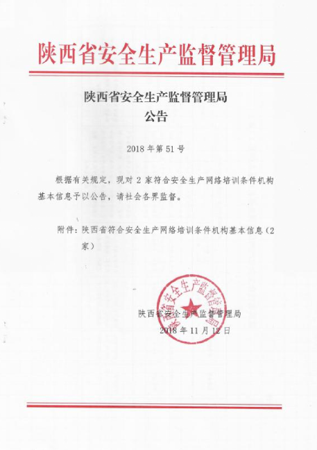 陜西省安全生產監(jiān)督管理局公告2018年第51號